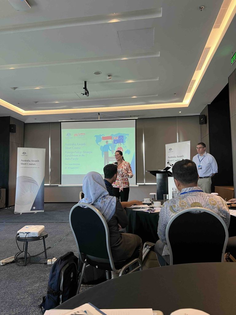 The Pre-Course Workshop in Jakarta on 26-28 August 2025 prepared participants with an overview of the short-course program, including introductions to the course leaders, the host university, short-course program expectations, and a site visit to the Australian Embassy in Jakarta. The participants departed to Australia for the short course program on 10 October 2025, and landed in Canberra to undergo intensive in-class learning session with experts from Australian National University (ANU), Australian Strategic Policy Institute (ASPI) and University of New South Wales (UNSW) Canberra, and site visits and intense discussion with the senior diplomats in DFAT, and member of Australian Parliament.