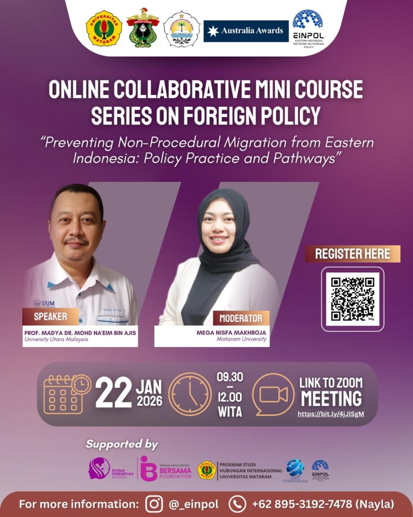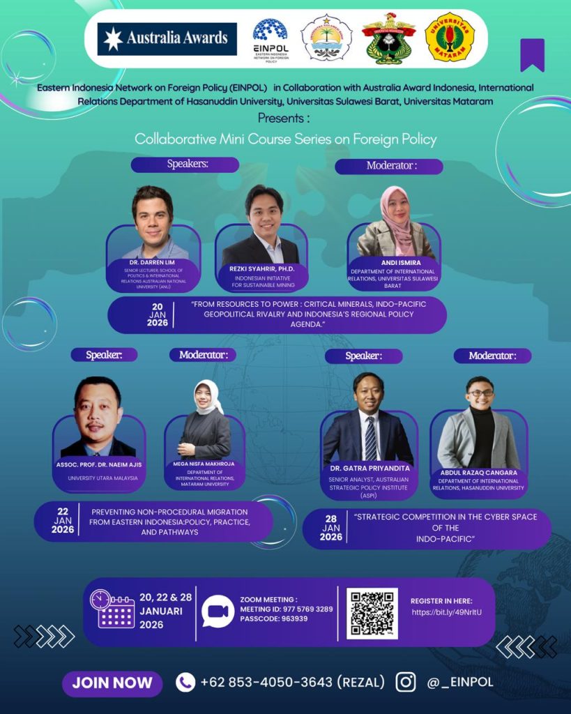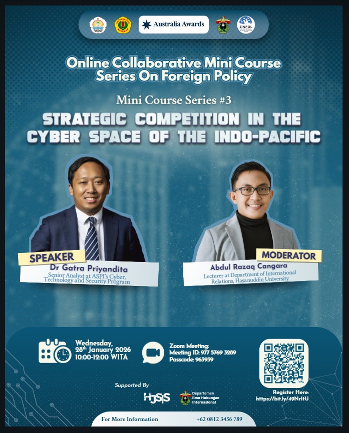 Embedded in the short-course program, participants were asked to develop an award-winning project based on their professional background. As a participant, Abdul Razaq Cangara collaborates with other participants – a lecturer from Mataram University, Mega Nisfa Makhroja, and from Universitas Sulawesi Barat, Andi Ismira Syahrir – by initiating an epistemic network, namely Eastern Indonesia Network on Foreign Policy (EINPOL), that has developed a mini-course series program to localise contemporary foreign policy issues to the local stakeholders in the eastern part of Indonesia.